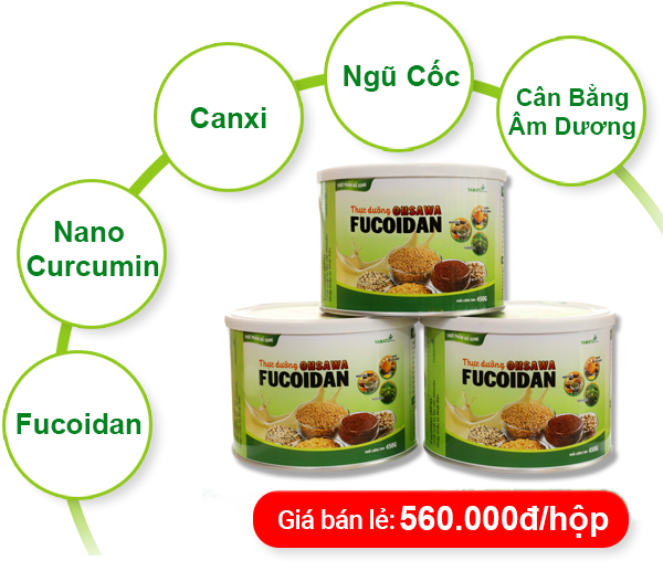 Kế thừa và phát huy tinh hoa thực dưỡng Ohsawa Nhật Bản, thực dưỡng Ohsawa Fucoidan ra đời theo nguyên lý cân bằng âm dương với 10 thành phần chính: Fucoidan, Nano curcumin, canxi, gạo lứt huyết rồng nảy mầm cùng các loại hạt như: yến mạch, hạt kê, đậu đỏ, đậu đen, đậu Hà Lan, hạt sen… giúp bổ xung dưỡng chất cho cơ thể bằng đạm thực vật, không lo mỡ máu, gan nhiễm mỡ. Sản phẩm được khuyên dùng cho người bị: ung thư, tiểu đường, huyết áp, gan nhiễm mỡ, mỡ máu cao, người bị béo phì, người có thể trạng ốm yếu
